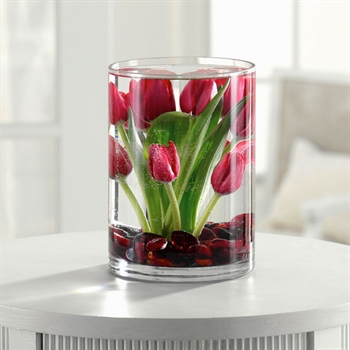 Ten tulip stems, submerged under water, create a striking presentation for all to "sea" and enjoy.