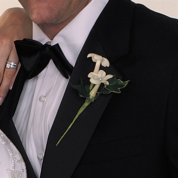 Stephanotis signify happiness in marriage. Our Pearl-Studded Stephanotis Boutonniere is a show-stopper!